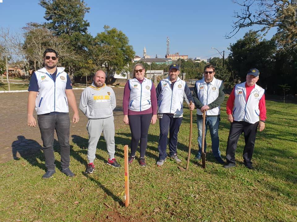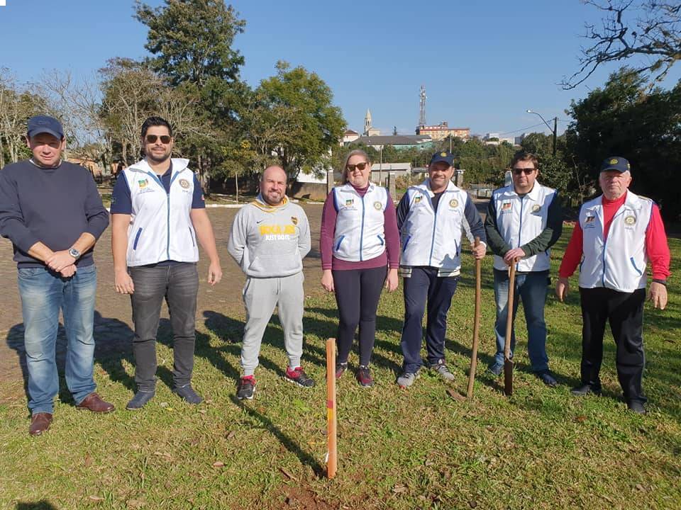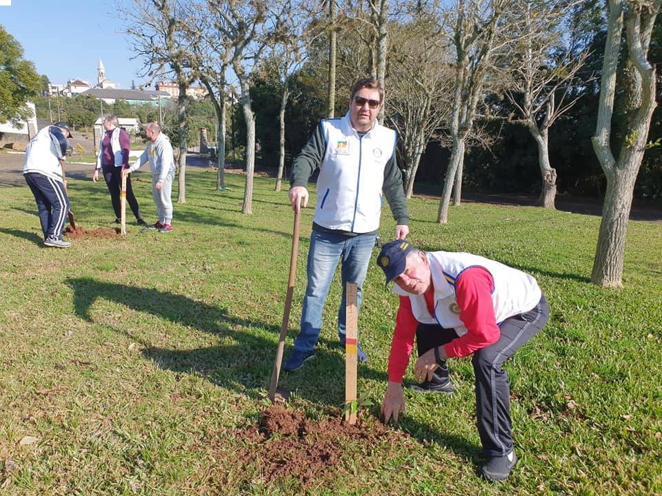 Rotarianos plantam árvores recebidas nos 128 anos do município de Júlio de Castilhos.