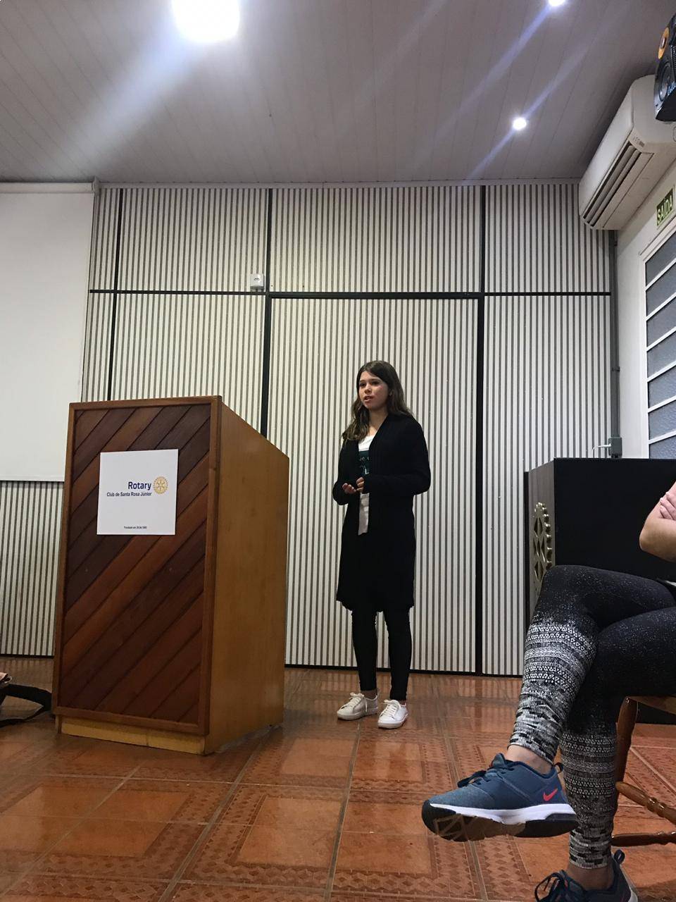 Na reunião do Dia do Convidado houve um momento em que cada um apresentou-se, falou um pouco sobre si e o que lhe motivou a participar do Interact. Na foto acima, temos a convidada Amanda.