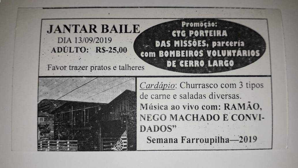 Jantar Baile em prol da "Associação de Bombeiros Voluntários de Cerro Largo"