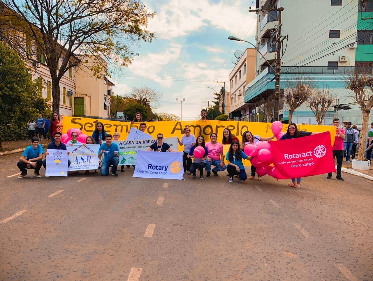 Na cidade de Cerro Largo, o Desfile Cívico, tradicionalmente realizado no dia 7 de Setembro, aconteceu no dia 14, a partir das 14h. O momento, no qual brasileiros e brasileiras demonstram seu patriotismo, também foi vivido pelo Rotaract Club de Cerro Largo e por membros da Casa da Amizade, do Rotary e do Interact. Junto aos integrantes da Família Rotária Cerro-larguense, foram bandeiras e a enorme faixa amarela que acompanha o Projeto Setembro Amarelo, oficialmente aberto com o desfile. O projeto que chama atenção à saúde mental e incentiva todos que passam por problemas psicológicos a procurarem ajuda, está em sua segunda edição e será composto por inúmeras ações de prevenção ao suicídio e em favor da vida.