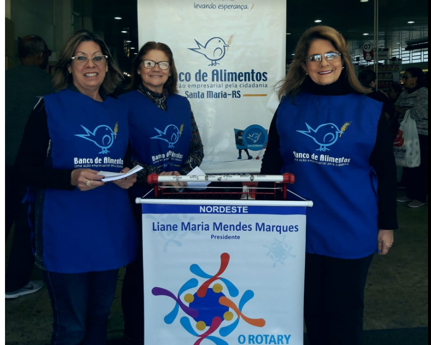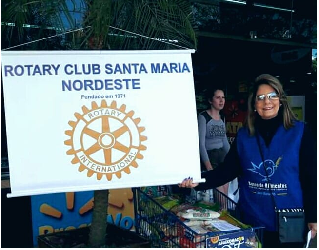 ACÃO VOLUNTÁRIA DO BANCO DE ALIMENTOS DE SANTA MARIA. O ROTARY CLUB DE SANTA MARIA NORDESTE , ATRAVÉS DA SUA PRESIDENTE, LIANE MARIA MENDES MARQUES, PARTICIPA DOS SÁBADOS SOLIDÁRIOS NOS SUPERMERCADOS DE SANTA MARIA.