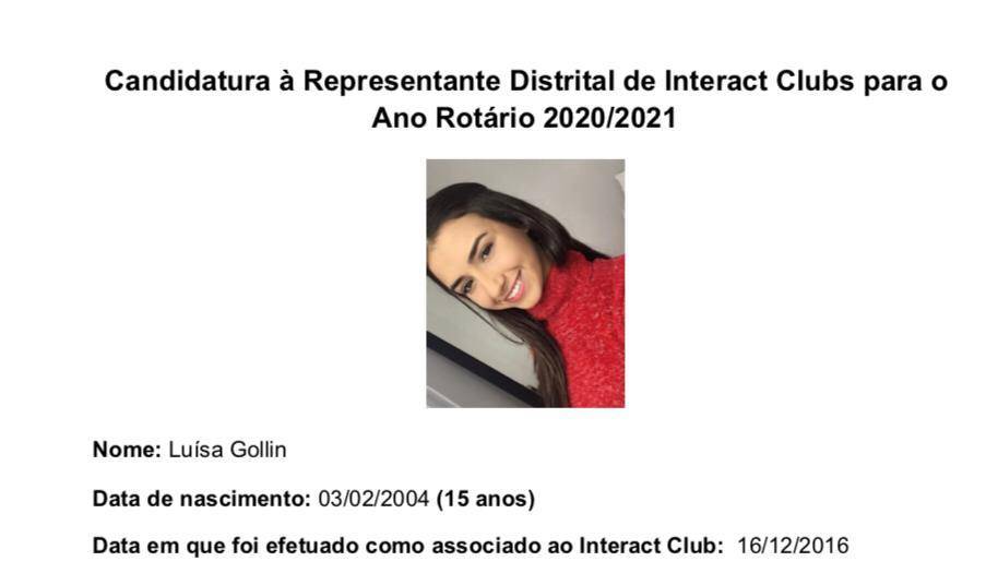 A companheira e past-president Luísa Gollin já enviou sua candidatura de RDI. A mesma foi aprovada e seu nome irá para uma votação, na qual a companheira compete pela vaga com Laura Amaral, de Palmeira das Missões. A escolha da RDI eleita ocorrerá nas Interactiadas do dia 6/9/19.