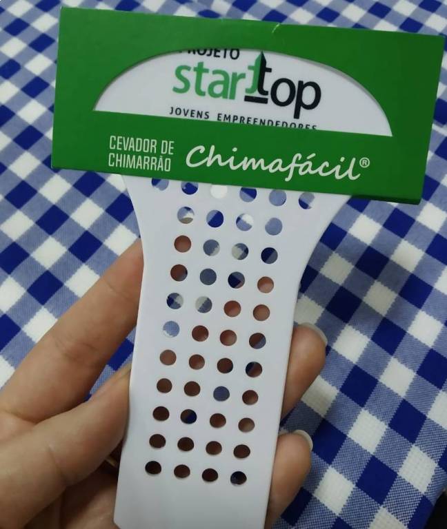 Na oportunidade nos foi apresentado um cevador de chimarrão, o Chimafácil, que consiste em um molde para a separação da erva, ao ceivar nosso mate de cada dia.