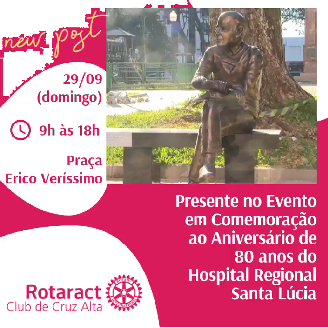 Neste domingo, 29/09 o Rotaract Club de Cruz Alta estará presente no evento em Comemoração aos 80 anos do Hostpital Regional Santa Lúcia! @hospitalregionalsantalucia