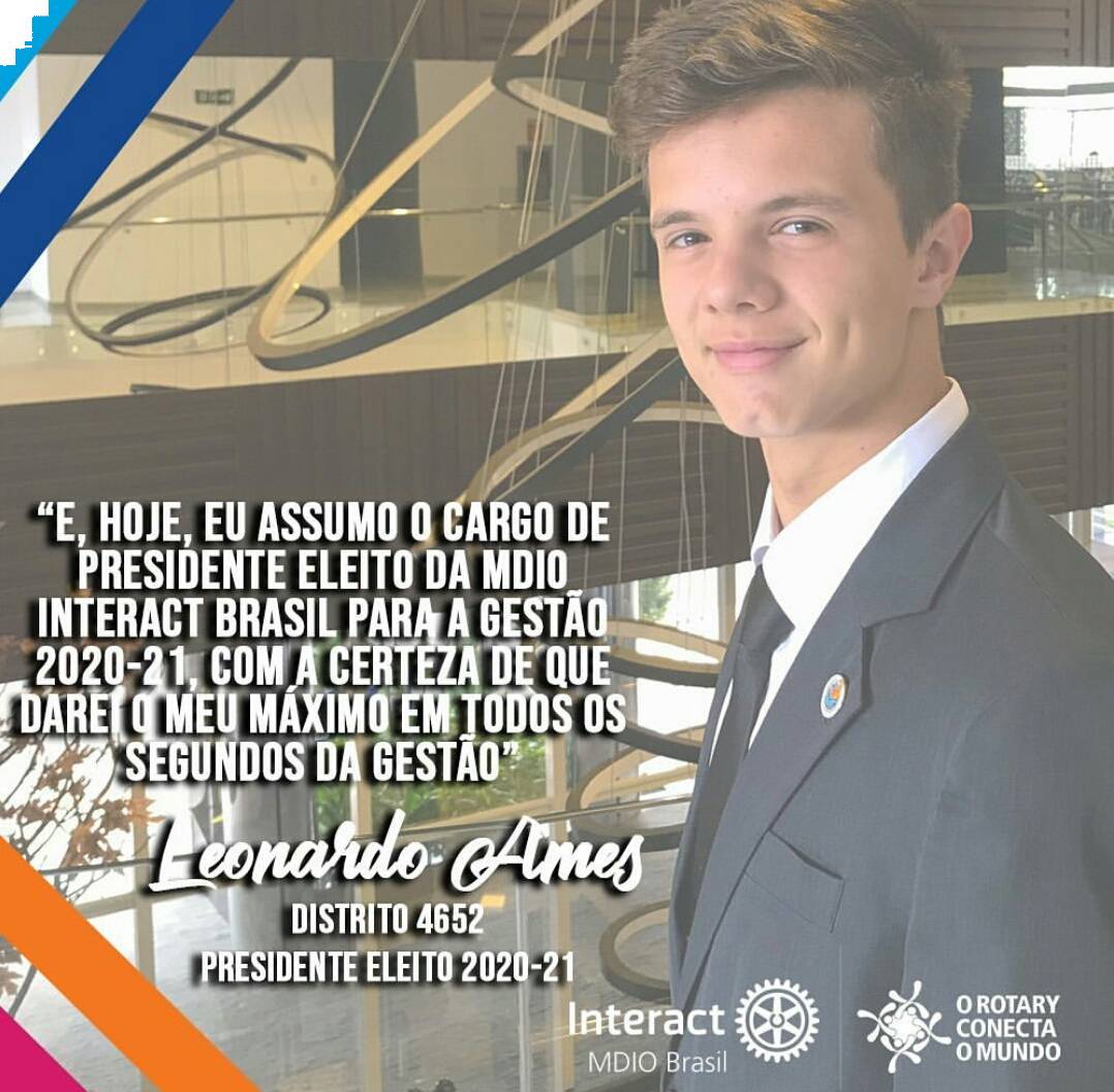 O companheiro Leonardo Ames, do distrito 4652 é o presidente eleito da MDIO Interact Brasil para a gestão 2020/21!