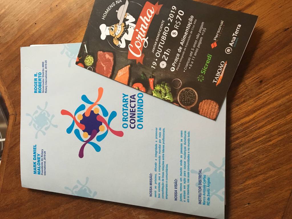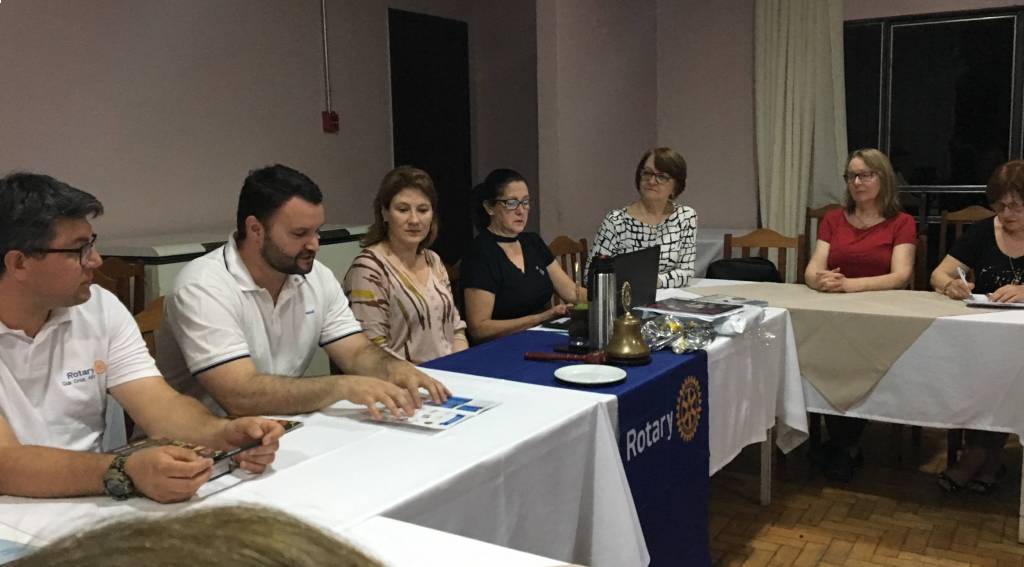 Na última terça-feira (01/10), o Rotary Club de Cruz Alta - Ana Terra recebeu a visita do presidente do Rotary Club Cruz Alta Pablo de Pietro e o do companheiro responsável pela Imagem Pública Luís Miguel Gomes para divulgar o projeto Homens Cozinha. Conforme Pablo o objetivo deste evento é propor uma corrente do bem, que através de doações realizadas pelas cozinhas parceiras, apoiadores e comunidade que prestigia o evento, arrecada e realiza doações às entidades assistidas pelo Rotary Club Cruz Alta. As rotarianas agradecem o convite e se farão presente neste evento!!!