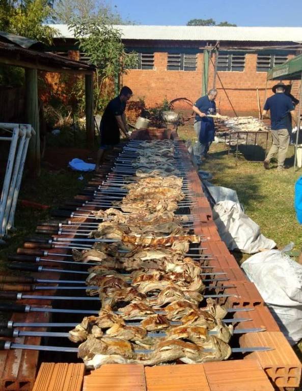 Centenas de pessoas praticaram a solidariedade e ainda se deliciaram com galetos e costelas assados pelo Rotary Club de Santa Rosa Júnior.