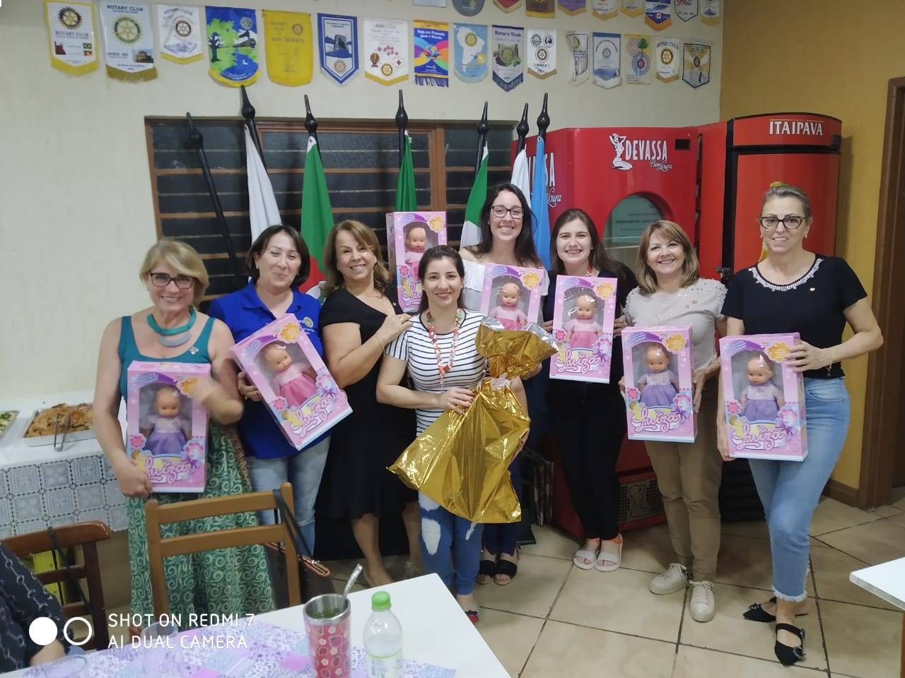 Durante a reunião do Rotary Club de Santo Ângelo Centro Norte, ocorrida no dia 1º de Outubro, nossas companheiras receberam das companheiras rotarianas doações de brinquedos para nosso projeto de Dia das Crianças.