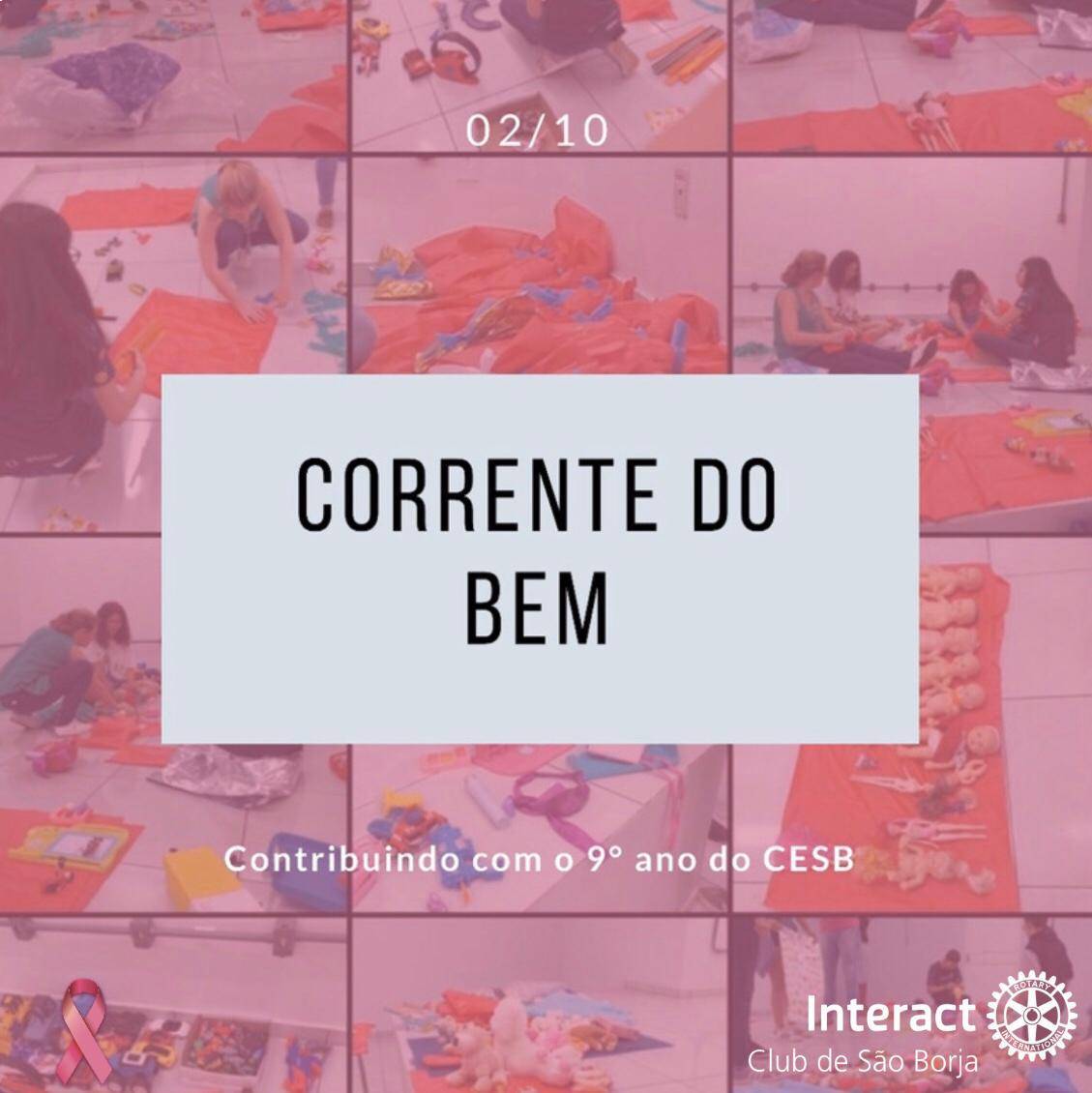 No dia 2 de outubro, em conjunto com o Rotaract, o Intercat Club colaborou com o projeto do 9º ano do CESB, auxiliando na montagem dos kits de brinquedos. Os presentes arrecadados serão distribuídos pela turma.